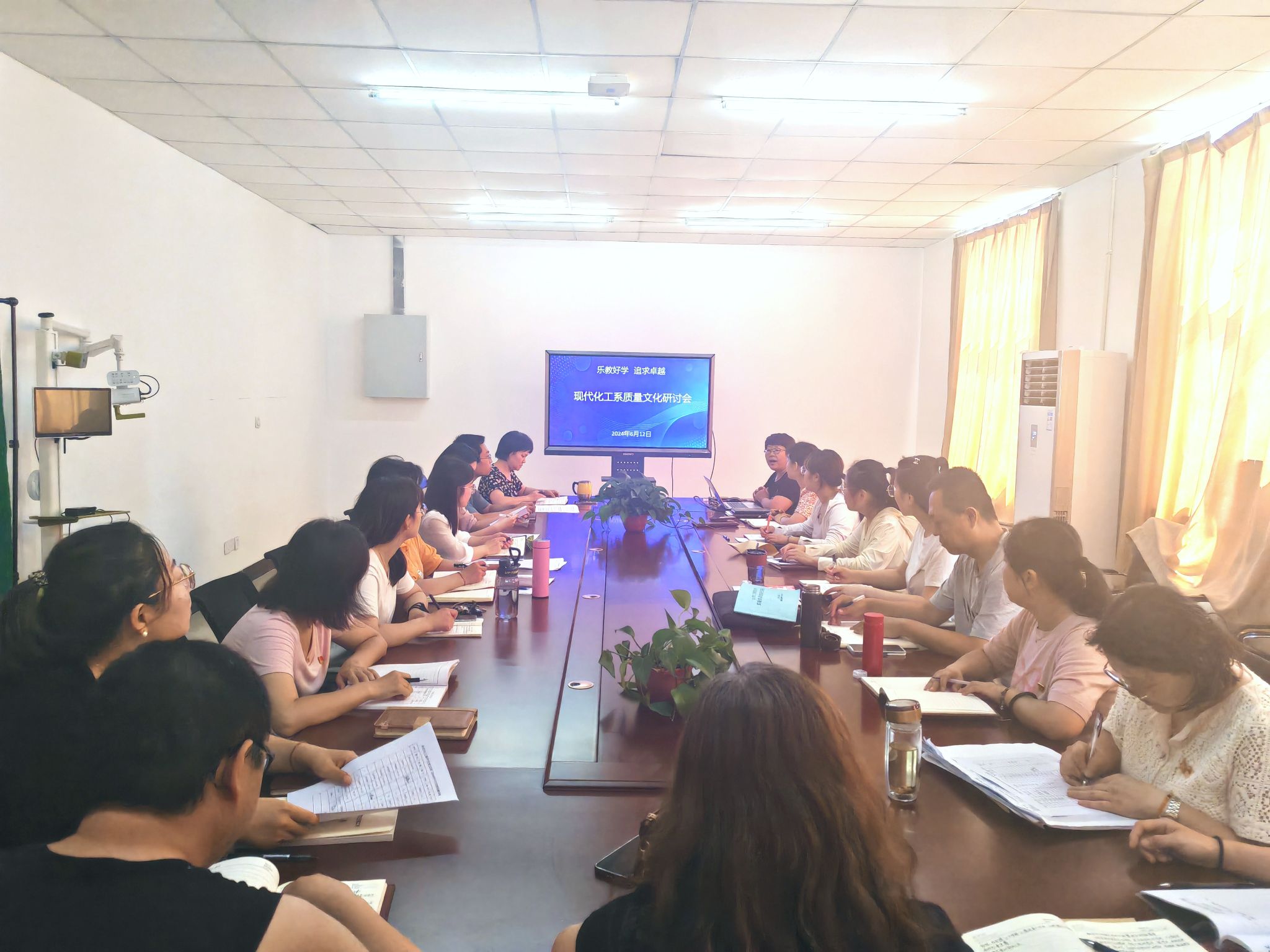 6月12日下午,现代化工系举办了以“乐教好学,追求卓越”为主题的质量文化研讨会。系主任乔仙蓉、副主任苏英兰与现代化工系全体教师围绕“乐教好学、追求卓越”质量文化理念,就如何贯彻落实“创建优质课堂,培育优秀工匠,涵养优质文化,共享优质生态”“四优”质量文化方针,提升教育教学质量进行了深入探讨。