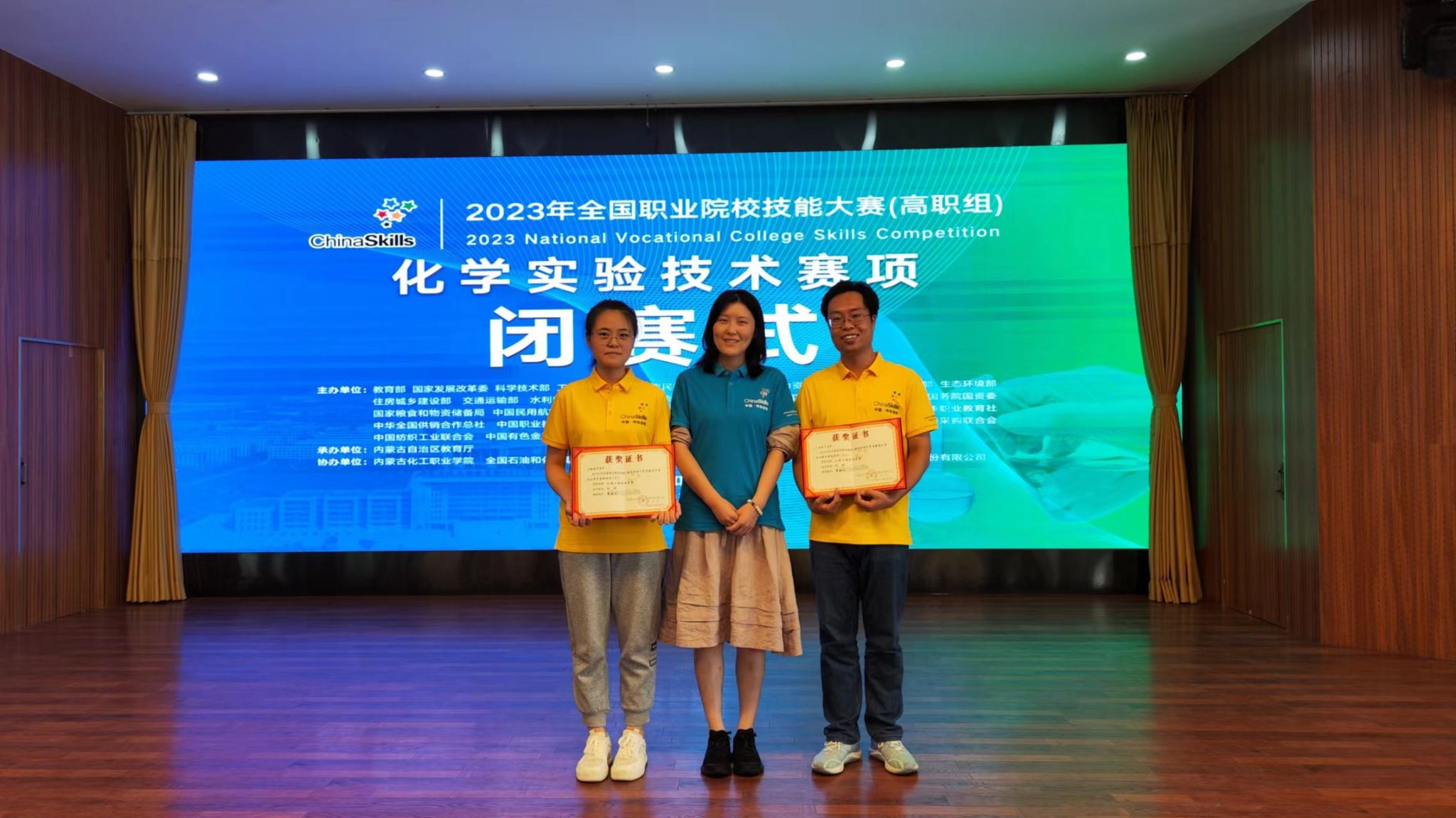 8月20日至23日,2023年全国职业院校技能大赛(高职组)“化学实验技术”赛项在内蒙古化工职业学院举行,来自全国30个省、自治区、直辖市的60支参赛队伍的120名师生参加了比赛。经过3天的激烈比拼,我系教师常越凡和分析2001班学生和婧组成的师生代表队荣获团体二等奖。