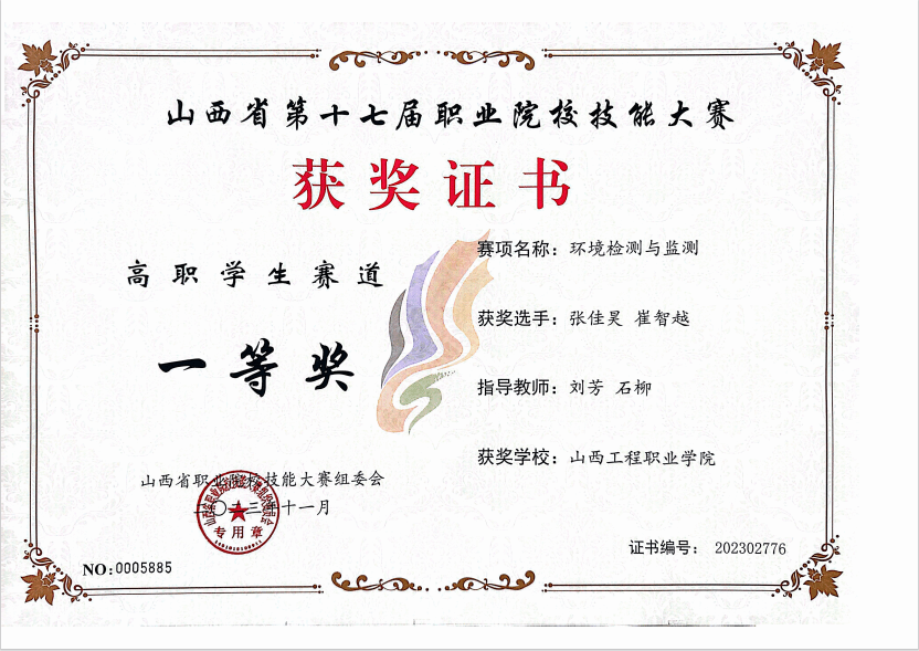 此前,在11月5日结束的"化学实验技术"赛项,我系参赛选手发挥稳定,包揽了此项赛事的2个一等奖,另一支队伍荣获二等奖。在11月8日结束的由长治职业技术学院承办的"环境检测与监测"赛项中,我系三队选手崭露头角,总成绩在23支参赛队伍中位列第二、第五、第六名,荣获1个一等奖,2个二等奖的好成绩,成功晋级国赛!