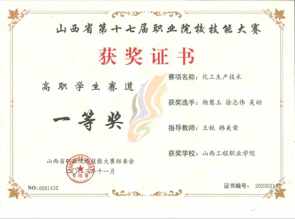 山西省第十七届职业院校技能大赛现代化工系再传喜讯!由我系承办的"化工生产技术"赛项于11月12日在时博备用网址龙潭校区圆满收官。我系参赛队伍以遥遥领先的优势荣获一等奖1个,二等奖1个。11月16日潞安职业技术学院承办的"现代化工HSE"赛项落下帷幕,我系三支参赛队伍经过激烈角逐,最终在18支参赛队伍中位列第四、第五、第六,全部荣获二等奖,成功晋级国赛!