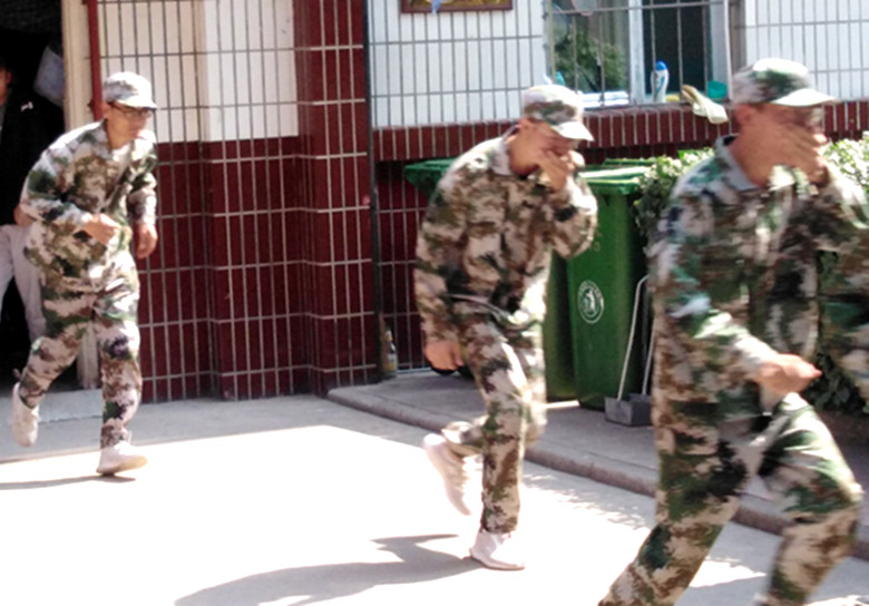 演习开始前,在教官和学生处老师的组织下新生有序进入演习现场。当各楼层演习指挥吹哨下达演习开始命令,参演学生听到疏散撤离信号后,迅速做好疏散准备,用湿毛巾折叠捂住口鼻,在舍长带领下迅速有序地按照规定路线低姿撤离。楼层疏散引导员以最快的速度到达楼梯口,指挥学生快速撤离,防止拥挤、踩踏事故发生。 出口疏散引导员指挥引导学生迅速撤离宿舍楼,到指定地点集结。 7、到达疏散集结地后,宿舍长迅速清点人数并向负责人报告疏散撤离情况。