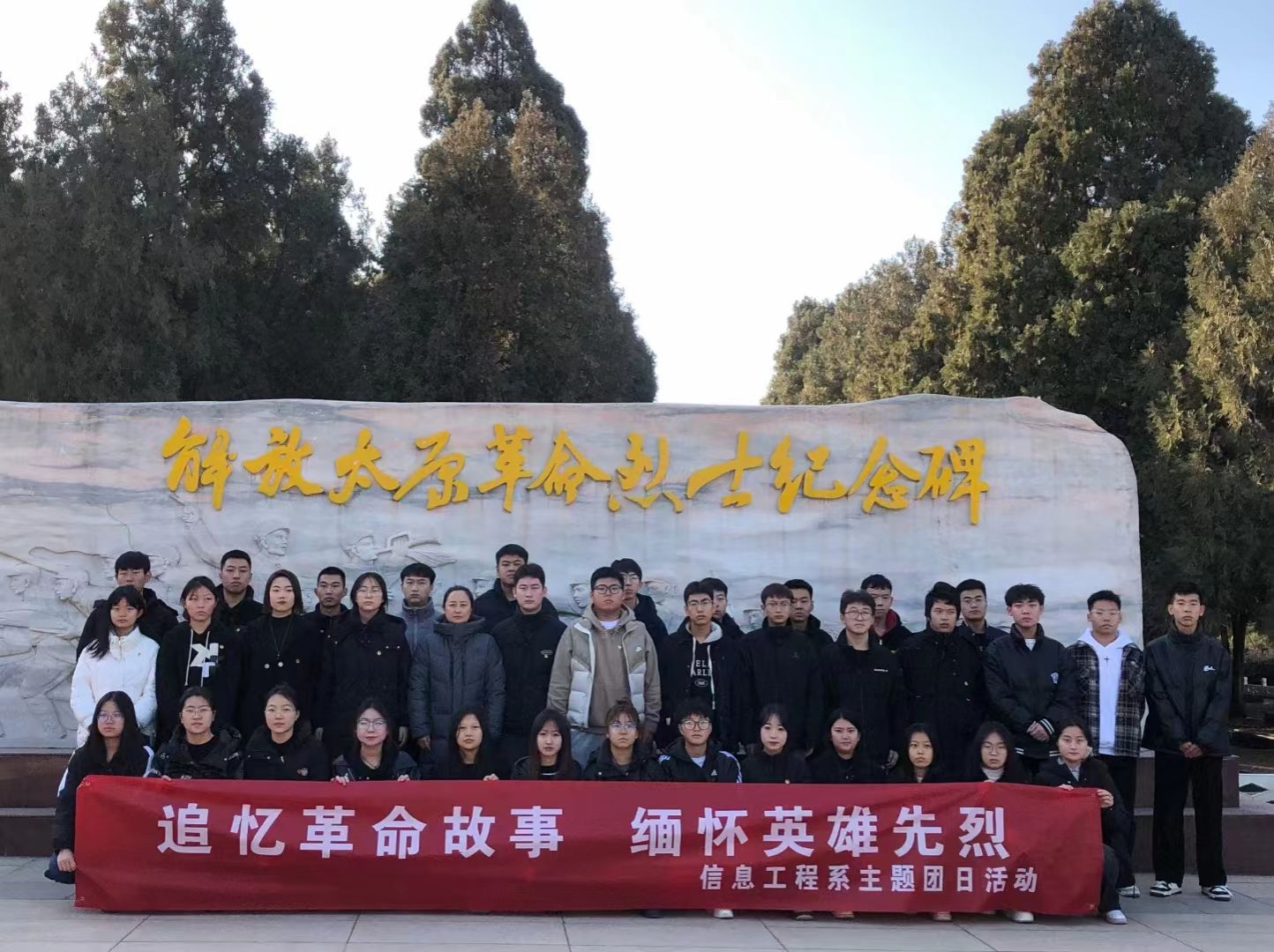 今年是纪念“一二·九”爱国运动 88 周年,为深入学习贯彻习近平新时代中国特色社会主义思想和党的二十大精神,引导广大青年学子继承和发扬“一二·九”运动的光荣传统与爱国精神,12月9日上午十点,信息工程系团总支组织团员青年赴太原双塔革命烈士陵园,开展了“追忆革命故事 缅怀英雄先烈”的主题团日活动。