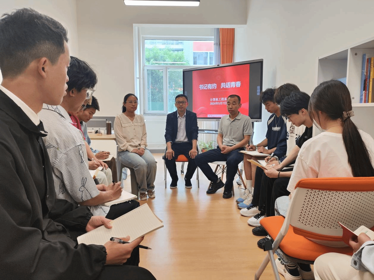 为深入学习贯彻习近平总书记关于青年工作的重要思想,纪念五四运动105周年,弘扬五四精神,倾听青年心声,建立常态化师生沟通机制,计算机工程系于5月7日下午5点在“一站式”学生社区青春领航辅导员工作室开展了“书记有约 共话青春”活动。系党总支书记黄华、党总支副书记徐鹏翔、团总支书记郭继萍与学生齐聚一堂,话青春梦想,叙使命担当。