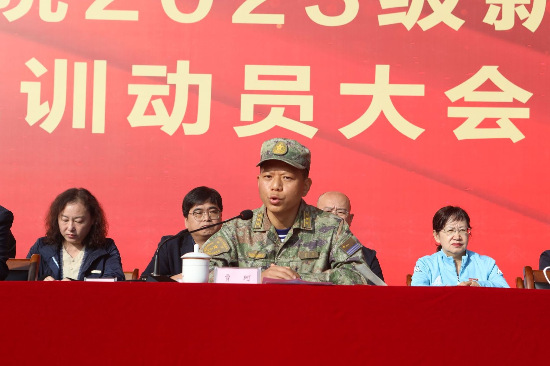 金秋时节,硕果飘香,我们满怀新希望,迎来了2023级新生。10月8日上午,学院2023级新生开学典礼暨军训动员大会在龙潭、唐槐校区举行。学院领导、中国人民解放军66016部队政治工作部上校主任,相关职能部门负责人,各系党总支书记、主任、副书记、全体辅导员,教师代表,企业代表以及2023级全体新生参会,副院长郝赳赳主持。