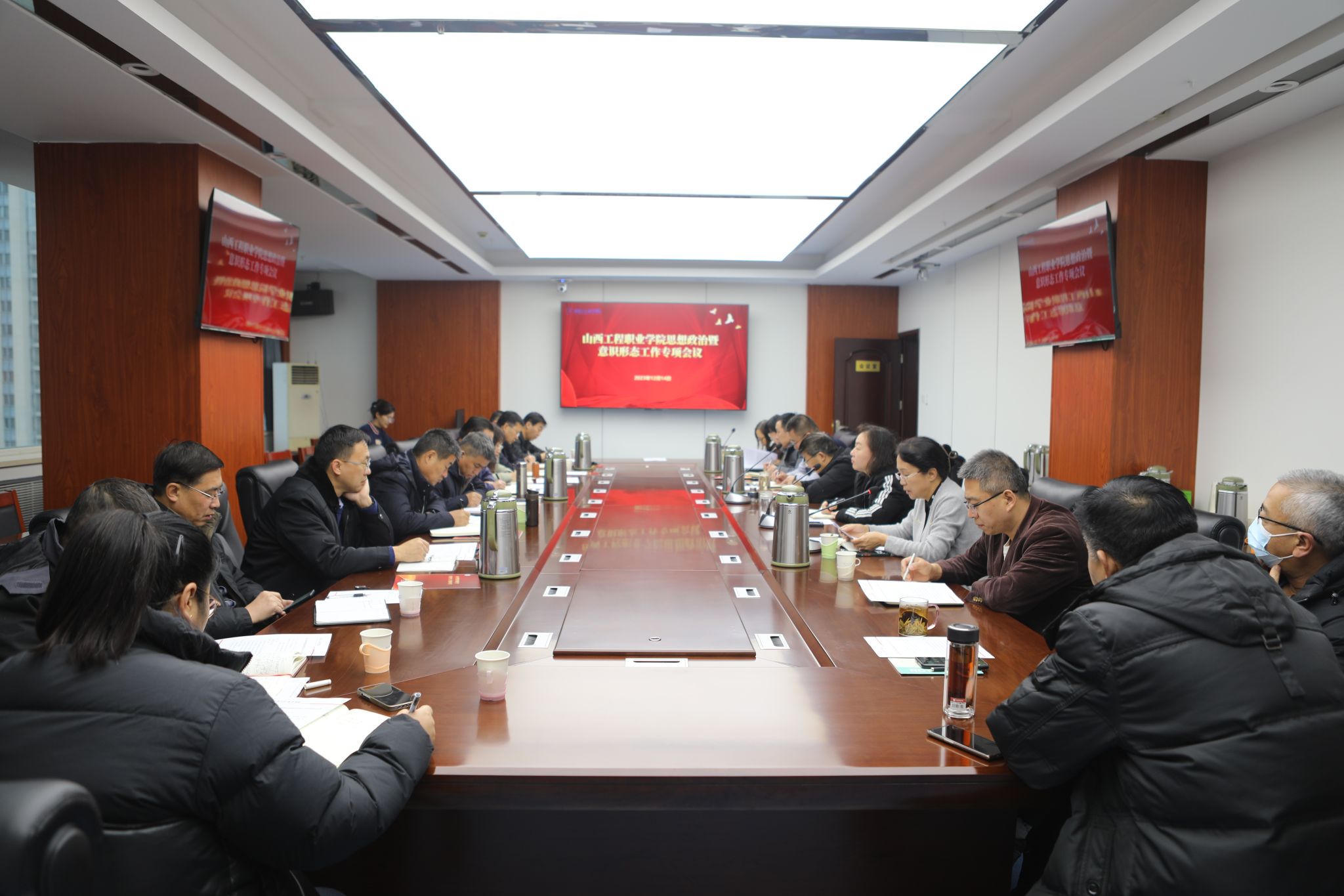 组织部(统战部)、人事部(教师工作部)、学生工作部分别围绕本年度党员干部、教师、学生思想政治状况作了汇报发言;思想政治理论教学部、机械工程系分别就马克思主义学院建设情况及本年度意识形态工作作了工作总结。